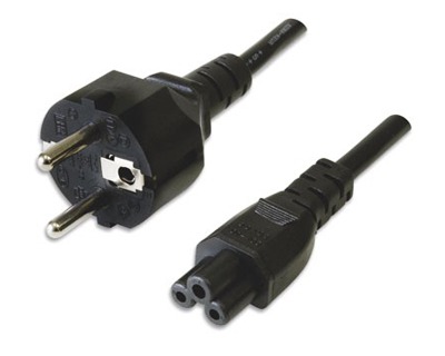 Questo cavo di alimentazione, noto anche come connettore Micky Mouse o Shamrock, è utilizzato per collegare un laptop o un adattatore di alimentazione alla presa di alimentazione tedesca (spina).