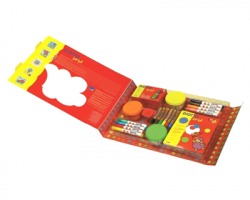 Contiene: 8 super pennarelli, 6 supermatitoni, 1 appuntamatitone, 1 libro da colorare, 3 barattoli ad 100g di pasta da modellare, 1 scatola con 4 accessori per pasta da modellare.