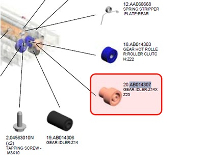 Ricoh AB014307 Gear: idler: Z14 x Z23 originale