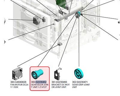 Ricoh D2236462 Gear:idler:Joint Unit:1:Z14T27 originale