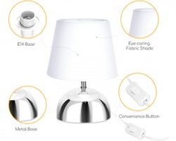 Aigostar Lampada da tavolo attacco E14, cavo da 1.5m, base in metallo lucido e paralume bianco