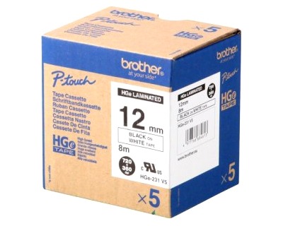 Brother HGE-231V5 Nastro originale nero su bianco 12mm x 8m - conf. 5pz