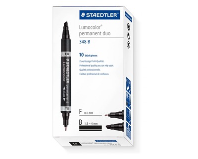 - Marcatore permanente con fusto compattoe due punte per scrivere e marcare su ogni superficie