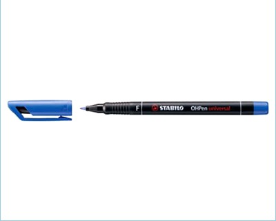 Penna OHPen ideale per lucidi e per quasi tutte le superfici lisce (cd-rom, DVD, plastica, vetro, metallo e ceramica). Impugnatura zigrinata, fondello e cappuccio ventilato con clip nel colore dell'inchiostro. Punta fine, ampiezza di tratto 0,7 mm,. Colore: blu.