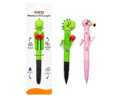 Scatto 091 Penna a sfera a forma di pugile, inchiostro colore blu, colori e fantasie assortite - 1pz
