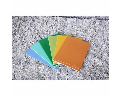 Quaderno Maxi Monocromo Green, 42 fogli, carta di grammatura 80gr, carta interna riciclata Perlweiss, formato A4 (210x297 mm), copertina gr 225, retrocaffè in 6 varianti colore assortite. Rilegatura a punto metallico. Rigatura 5M.