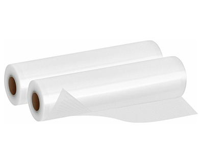 Il kit comprende 2 rotoli di pellicola sottovuoto con dimensioni di 28x500 cm. L'alto livello di trasparenza della pellicola consente una rapida visione del cibo conservato.