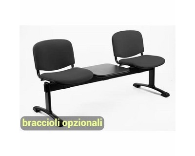 Panca a due posti con tavolino collettività-attesa Dado D52PT, struttura in acciaio nero, Braccioli opzionali (codici 110073, 110078), a schienale fisso. Dado è una linea veramente multipurpose, che presenta ogni soluzione per i più svariati utilizzi