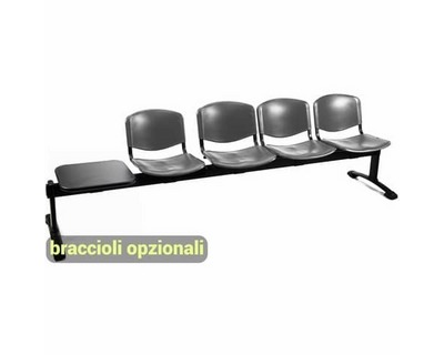 Panca a 4 posti collettività-attesa con tavolino Dado D54PT, struttura in acciaio nero, Braccioli opzionali (codici 110073, 110078), a schienale fisso. Dado è una linea veramente multipurpose, che presenta ogni soluzione per i più svariati utilizzi